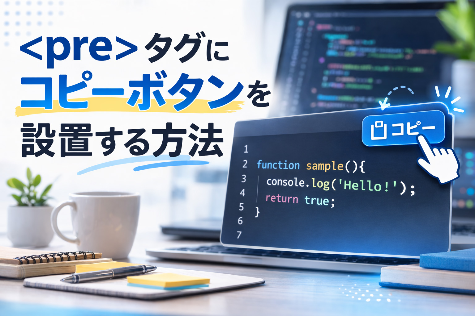 JavaScriptを使用して<pre>タグ内のテキストをワンクリックでコピーできるボタンを自動生成する方法をご紹介します。