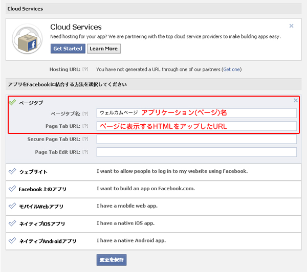 Facebookアプリケーションの設定