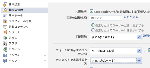 ※ウェルカムページの設定はFacebookページの管理者には反映されず、管理者のアカウントでFacebookページに訪れても、一番最初に表示されるのはFacebookページではなくウォールなどが表示されるので確認の際は注意してください。