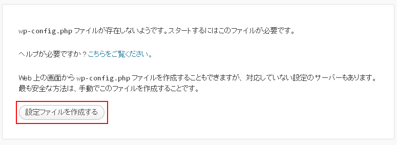 - 「設定ファイルを作成する」をクリックしwp-config.phpを作成します。